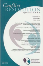 Conflict Resolution Quarterly is an academic publication. CRQ publishes scholarship on relationships between theory, research, and practice in the conflict management and dispute resolution field to promote more effective professional applications. Conflict Resolution Quarterly is sponsored by the Association for Conflict Resolution. As the fields of Alternative Dispute Resolution (ADR) and Conflict Resolution experience exponential growth, Conflict Resolution Quarterly has become an indispensable tool for practitioners, scholars and students. That’s why it is the most widely distributed journal covering the role of the neutral in processes such as mediation, arbitration, negotiation, facilitation and other conflict resolution processes at the local, national and international levels.